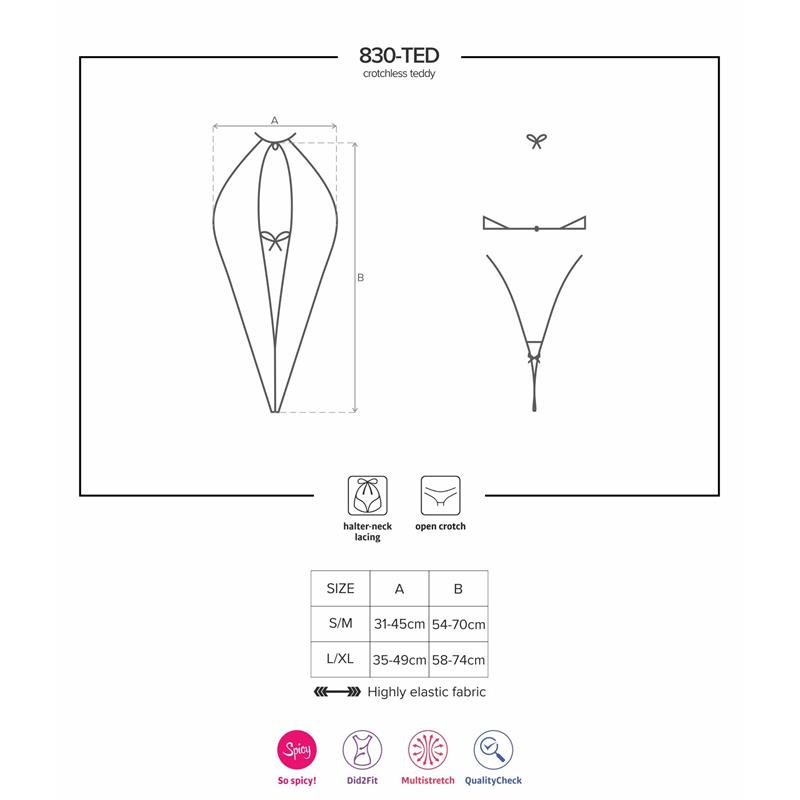 Seductive Teddy with Halter neck with which you will triumph. On the front has a seductive shape that embraces your body and fits perfectly to all your wonderful curves. You can tie or untie the two parts that caress your chest to show what you want. But, a pleasant surprise awaits you when you turn, a totally open back. But do not worry, you can adjust all the straps, comfort and sensuality together.