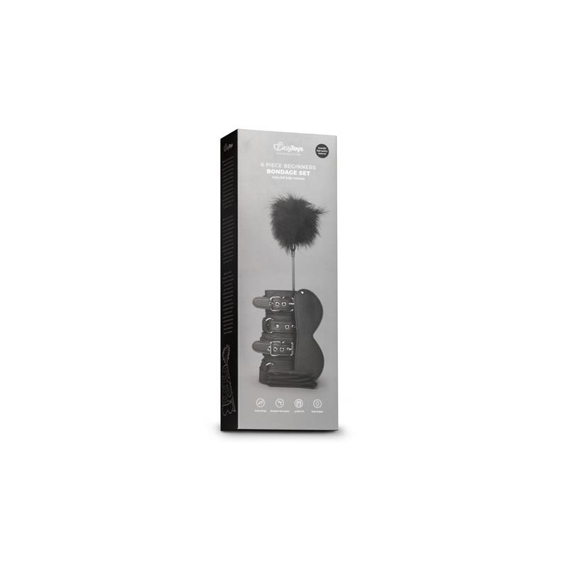 Are you interested in bondage, but you dont know where to start? Then the beginners bondage fantasy kit is the right choice for you! It introduces you to the world of bondage and allows you to use your imagination as this fun set can be used any way you like. The set consists of handcuffs, ankle cuffs, an eye mask and a tickler. The four cuffs have straps attached to them, so you can tie them together or tie them to bedposts, chairs, bondage harnesses etc. The possibilities are endless! The eye mask blocks out light, which heightens the other senses for an exciting bondage experience. Because of the elastic strap is always fits perfectly. Use the tickler to tease your partner and to stimulate the nerve endings. This makes the skin even more senstive and adds an extra dimension to your bondage game.