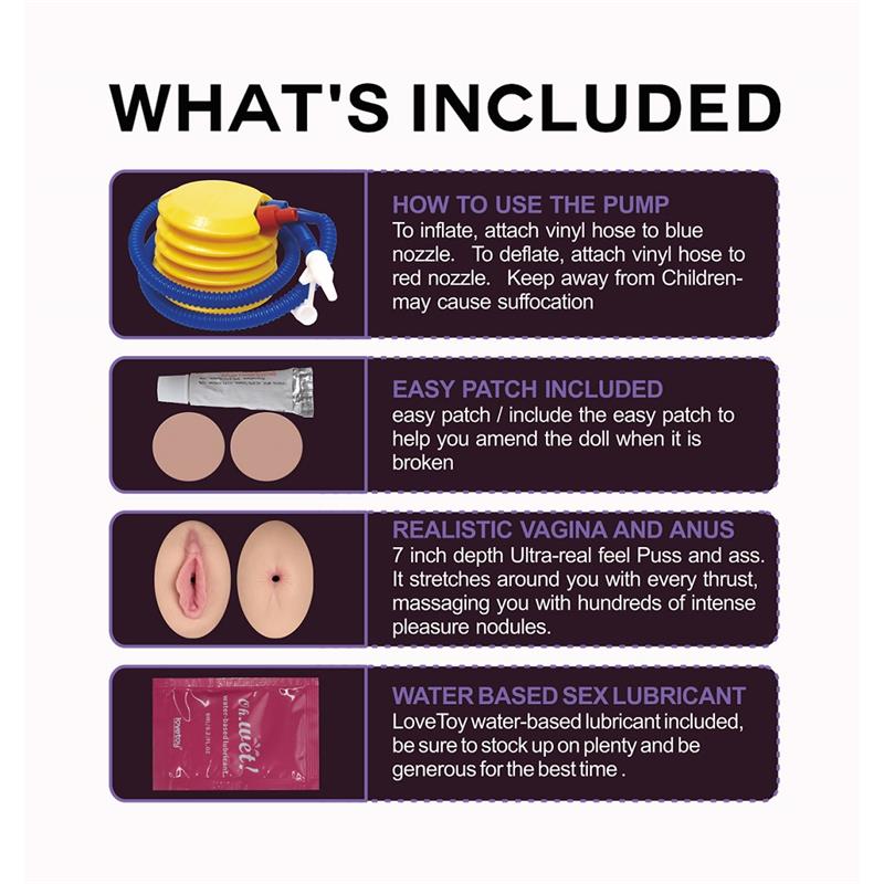Are you looking for a good quality but affordable inflatable dolls? Completely made from the face of actress Victoria, it has a pair of voluptuous silicone breasts, with real touch nipples. That is surprising and different from other inflatable dolls on the market. It features a realistic vagina and ass, made from TPE, an ultra-real feeling material that makes her inputs amazing. Remember to use your favorite water-based lubricant and clean it before and after each use.