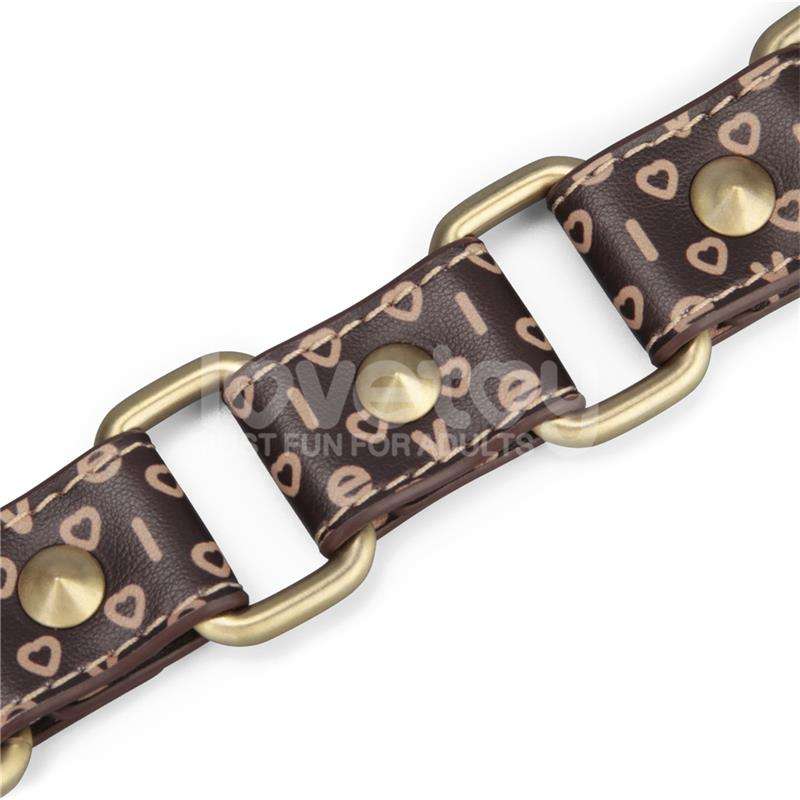 Immerse yourself in a world of mystery and sensuality with our Rebellion Reign Ball Gag. This striking piece has been crafted from premium PU, with six antique bronze spikes accentuating the dark brown faux leather, adding an extra layer of unique style and symbolizing the brand’s rebellious spirit.