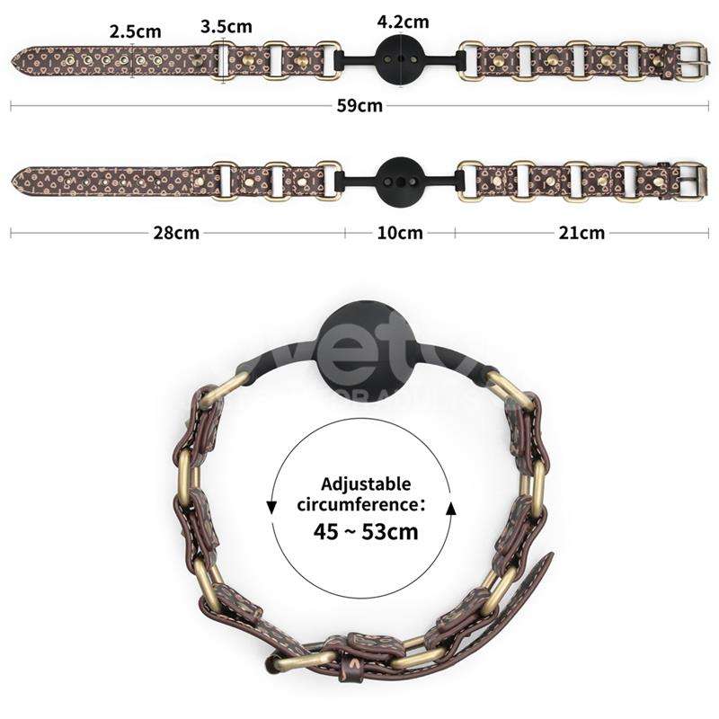 A breathable silicone ball, 1.6 inches in diameter, is ready to challenge and excite you. Its breathability ensures safety and comfort without detracting from its allure. The straps are 23 inches long and 1 inch wide, offering a flexible fit that conforms to the shape of your face.